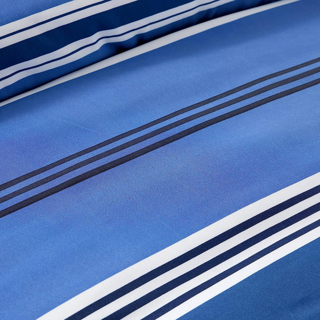 Harlow Stripes Blue Duvet Cover Set with Pillowcases Breathable Polyester Button Closure Bedding Available in Single Double and King Sizes by OLIVIA ROCCO