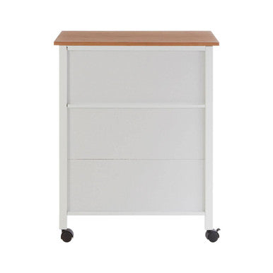 The robust trolley is made from durable MDF and given a white finish to freshen up your decor. Complementing the white is a bamboo top that gives an added surface space, making it ideal during food preparation. Two large open shelves are perfect for storing pots and pans, fruit and veg or condiments. The drawer is suitable for placing cutlery, chopping boards, placemats or utensils, keeping them close to hand but out of sight. 6 spaces are allocated for wine bottles keeping them safely stored and keeps countertops clutter free.