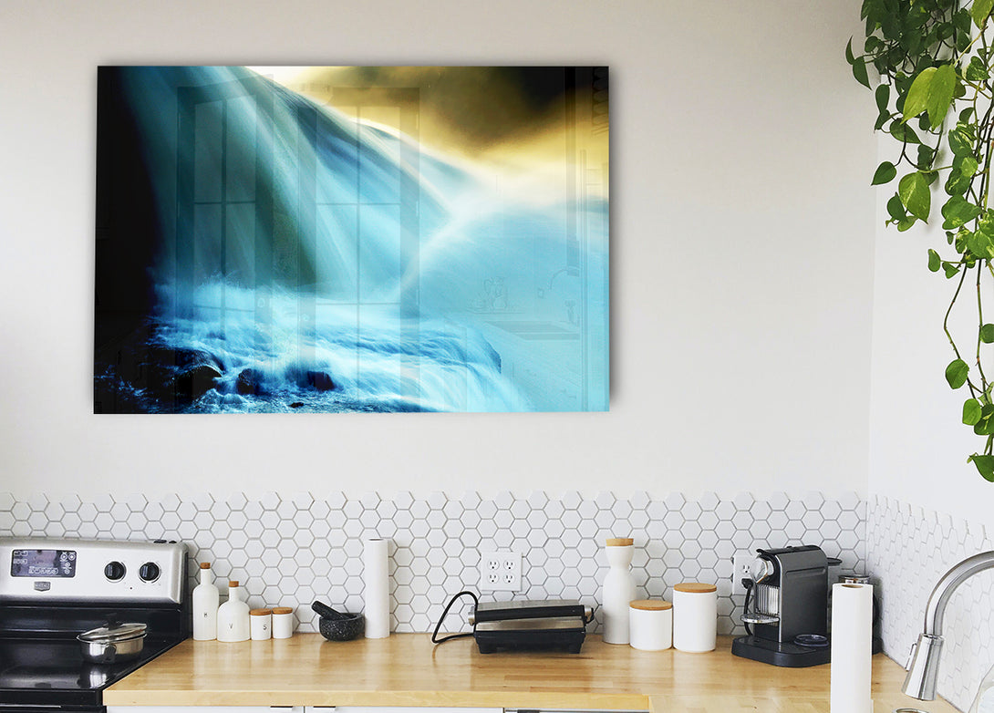 Heavens Waterfalls acrylic print, UV printed onto 5mm thick acrylic glass. Comes with everything you need to hang on your wall.