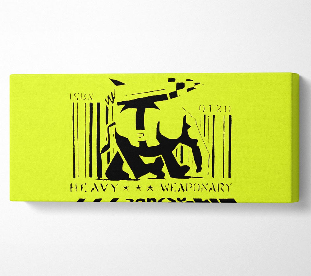 Heavy Weaponary Lime canvas, printed on coated polyester canvas. Mounted on to a 44mm box frame, ready to hang.