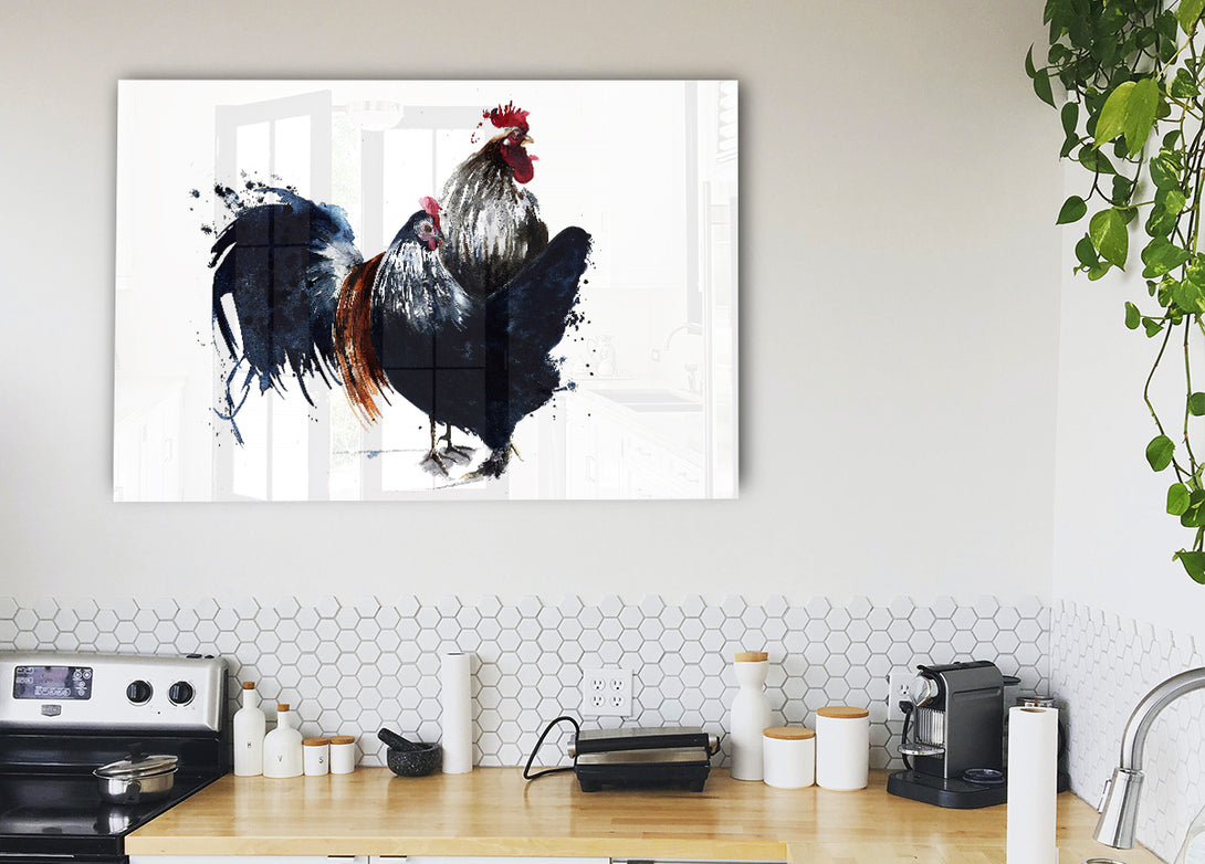 Hen Duo acrylic print, UV printed onto 5mm thick acrylic glass. Comes with everything you need to hang on your wall.