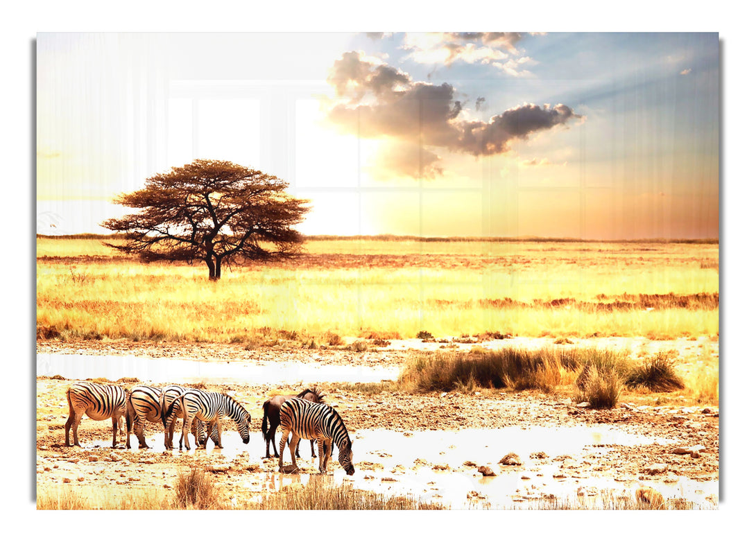 Herd Of Zebras acrylic print, UV printed onto 5mm thick acrylic glass. Comes with everything you need to hang on your wall.