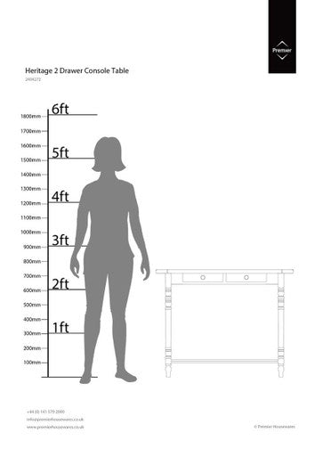 The Heritage console table is crafted from natural wood. Both drawers feature round black handles which create a counterpoint to the graceful antique white finish. Carved legs and an overhanging top surface add to its attractiveness.