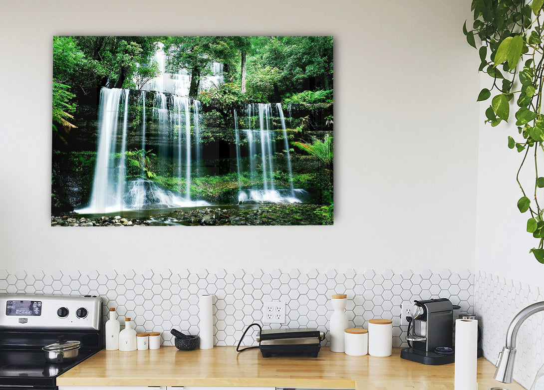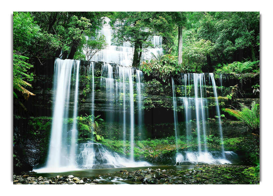 Hidden Forest Waterfall acrylic print, UV printed onto 5mm thick acrylic glass. Comes with everything you need to hang on your wall.