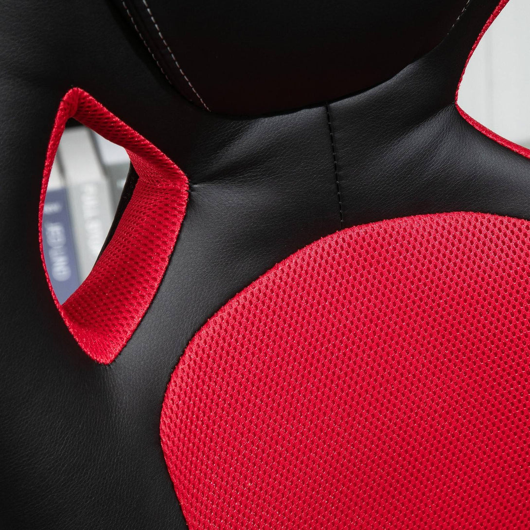 - Faux leather upholstery, with mesh panel for smooth-feeling style