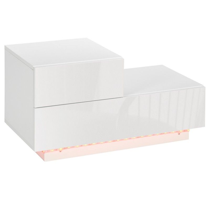 High Gloss Front Bedside Table with Drawers Nightstand with RGB LED Light and Remote for Bedroom Living Room White