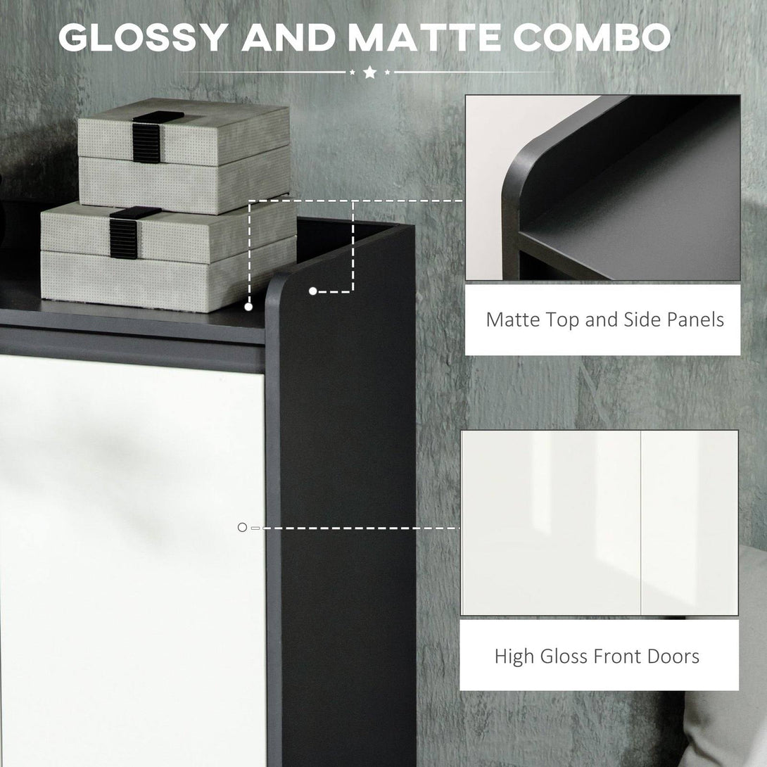 - Modern shoe cabinet with high gloss white doors matches the home furniture of most styles