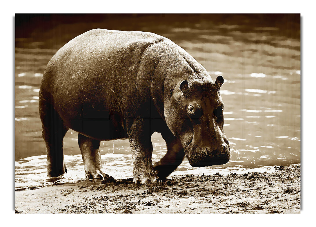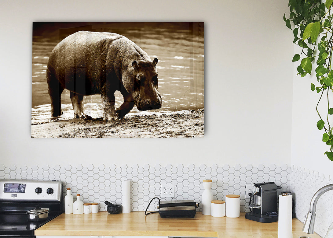 Hippopotamus Bath acrylic print, UV printed onto 5mm thick acrylic glass. Comes with everything you need to hang on your wall.