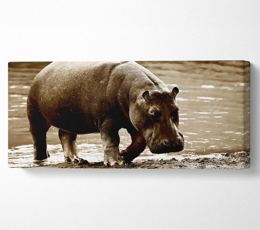 Hippopotamus Bath canvas, printed on coated polyester canvas. Mounted on to a 44mm box frame, ready to hang.