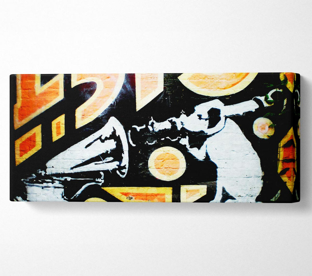 Hmv Dog canvas, printed on coated polyester canvas. Mounted on to a 44mm box frame, ready to hang.