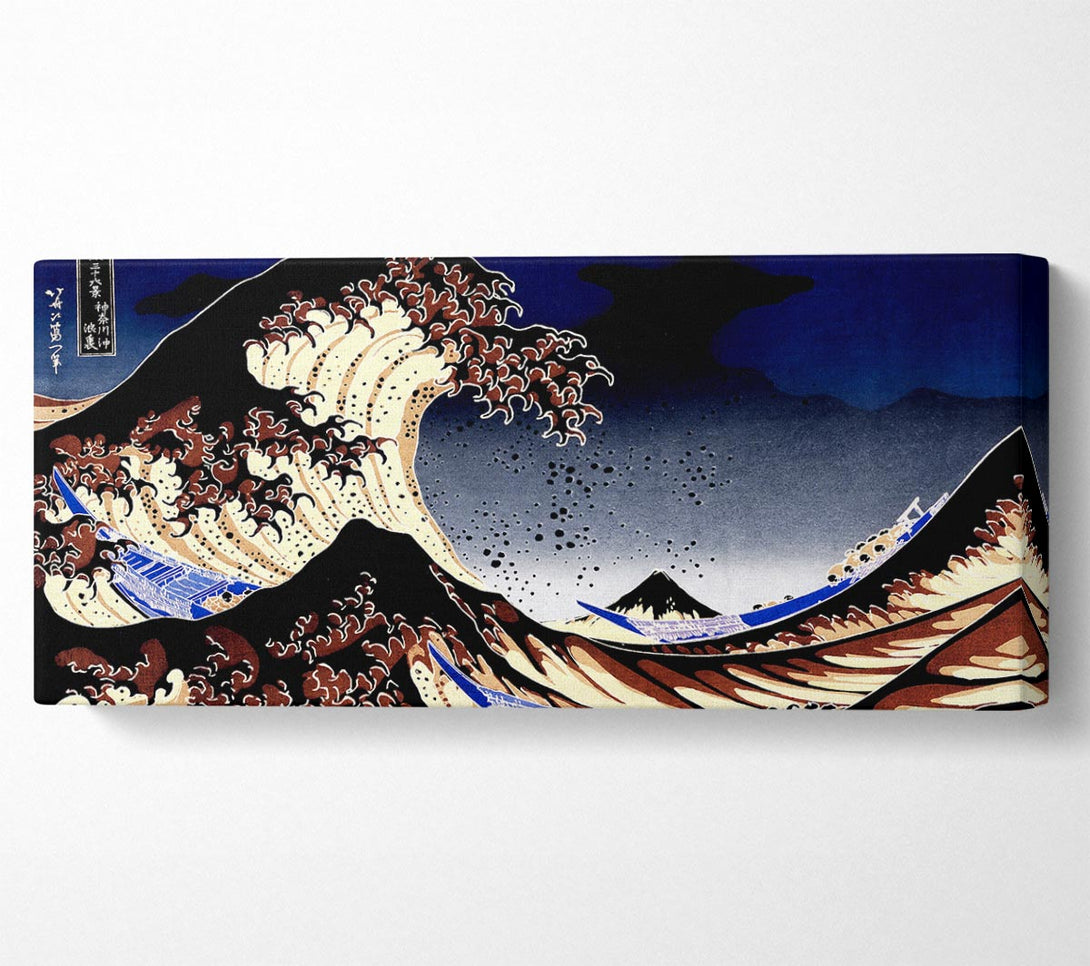 Hokusai The Wave canvas, printed on coated polyester canvas. Mounted on to a 44mm box frame, ready to hang.