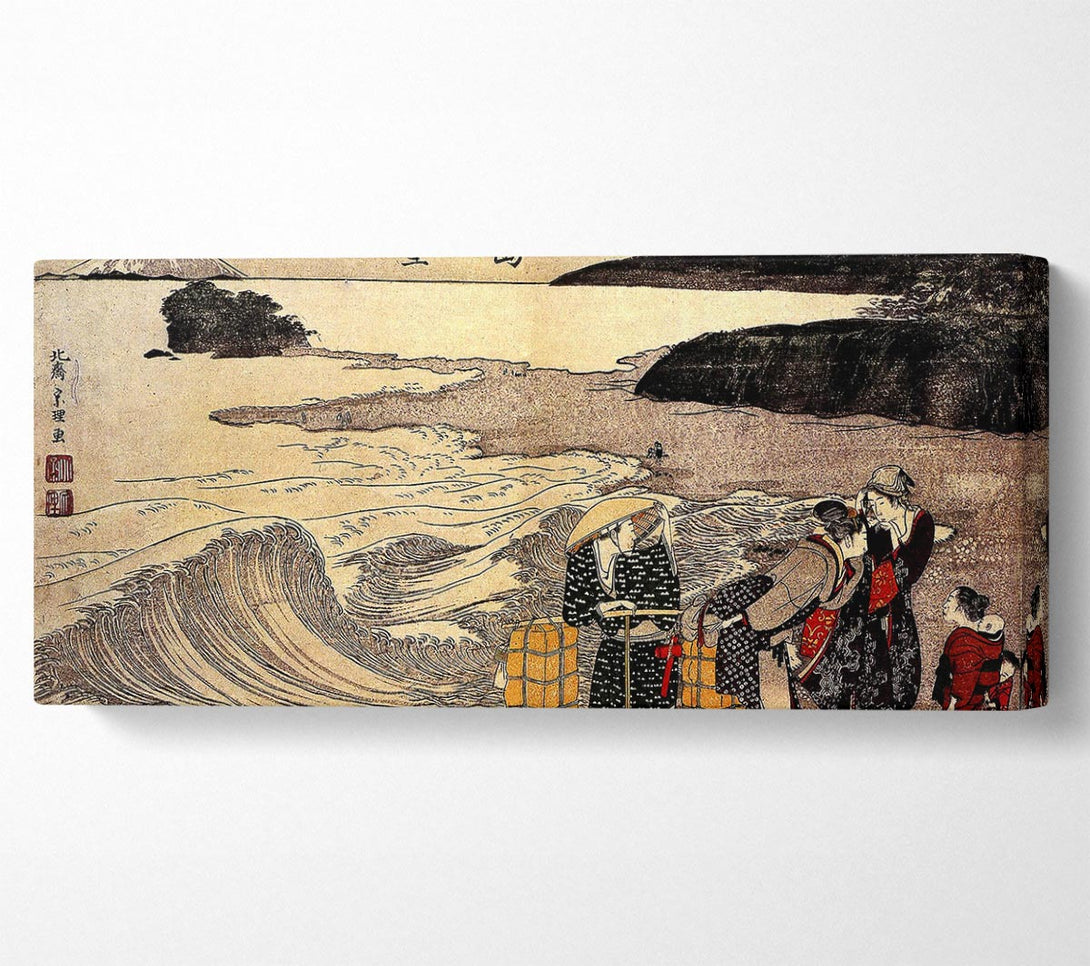 Hokusai Women On The Beach Of Enoshima canvas, printed on coated polyester canvas. Mounted on to a 44mm box frame, ready to hang.