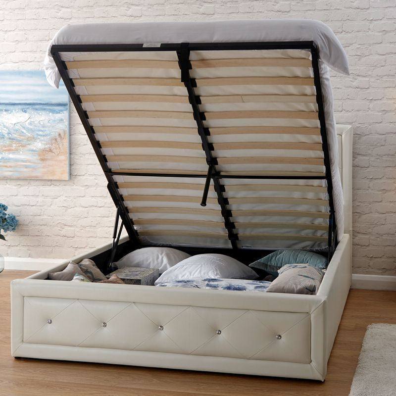 Hollywood Double Ottoman Bed Faux Leather White 5 x 7ft