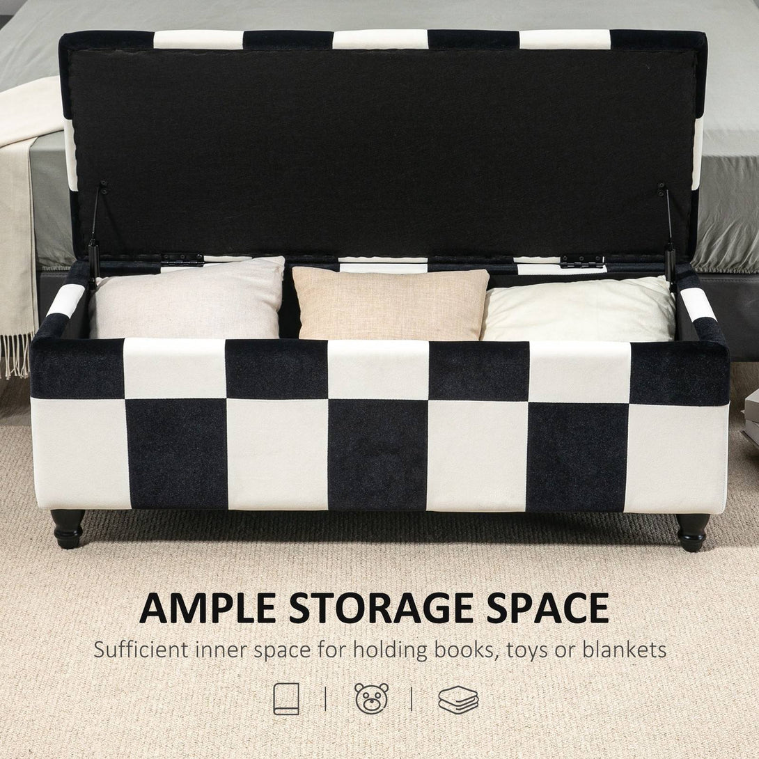 A fun colour block design, paired with handy discreet storage: say hello to the cool way to keep your home tidy this season and beyond. This HOMCOM 47 x 105cm storage ottoman is great for bedrooms and living spaces - it's got enough room for keeping small furnishings stored. The hinged lid is easy to open and close, with a padded top which can be used as a seat. Complete with wooden legs for support.