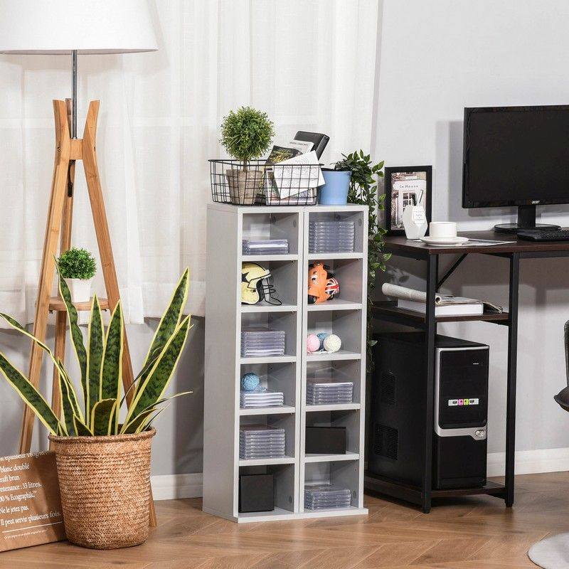 Homcom 12-Shelf Tall Media Storage Unit - Grey