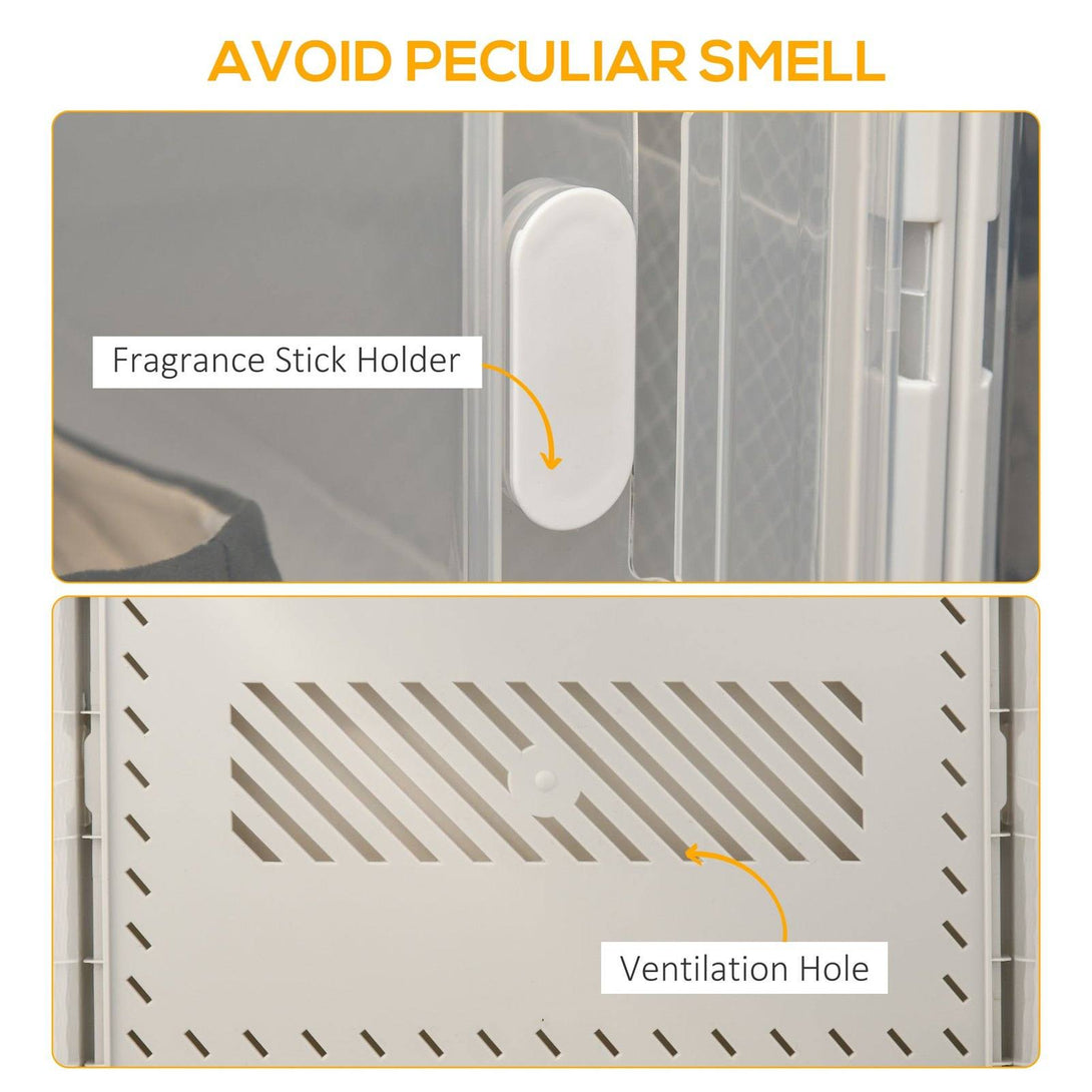 Are you tired of shoes on display and in the closet without any boxes and collecting dust? This clear shoe box from HOMCOM made into a customisable design – 18 cubes that can be set up in any way you wish, a cutout design on top securely stack one box on top of another, making it ideal for fitting into any size and shape space hassle-free. With clear plastic sheets, you can find items quickly. A great piece to your house!