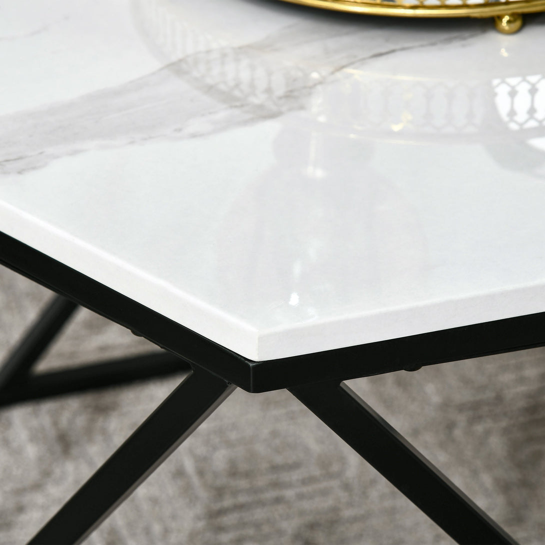 Homcom Coffee Table with High Gloss Marble Effect Table Top