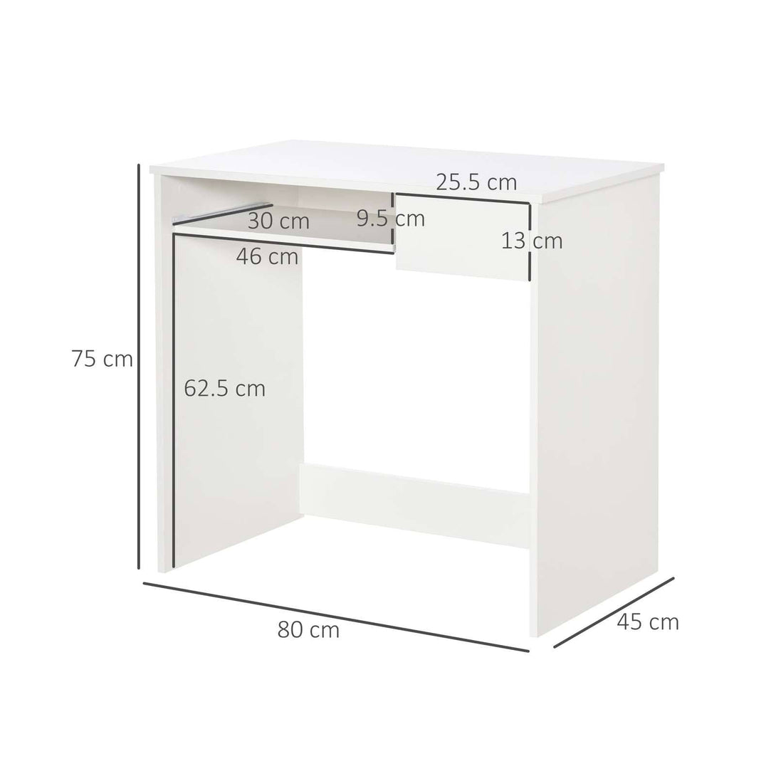 Homcom Compact Computer Table With Keyboard Tray Drawer Study Office Working Writing Desk White