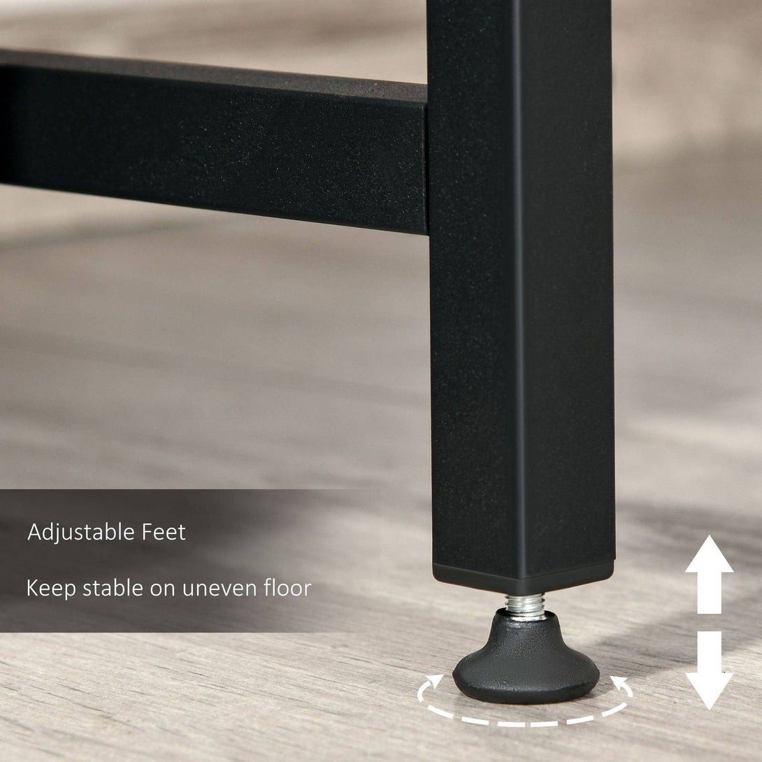 Create the perfect environment for working from home with this two-tier work desk from HOMCOM. It uses a metal frame for a tough and sturdy structure, with thick particle board shelves for a solid and flat surface to work from. Both shelves are covered with melamine, so they are smooth and are protected against lighting marks and damage. The bottom shelf features a back panel, which allows safe storage and out of sight. This office table can make your work enjoyable.