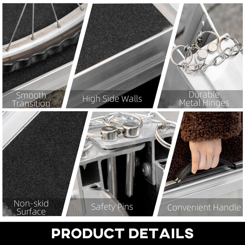 Homcom Duo Wheelchair Ramp Pushchair Mobility Assistance w/Carry Handle 72x61cm