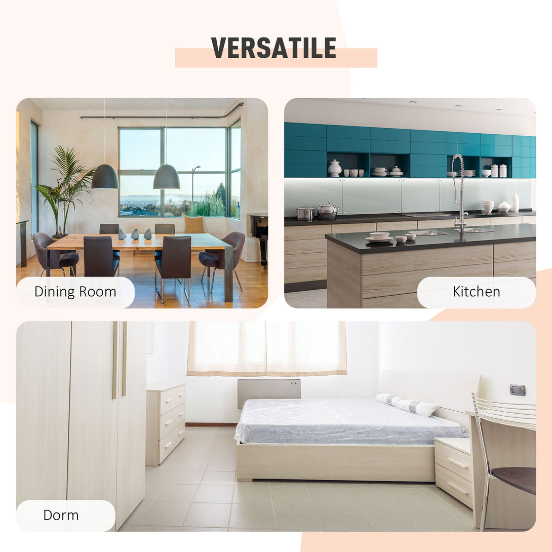 Make the most of your existing space with this foldable table from HOMCOM. Comes with a space-saving drop-leaf design, It is a smart choice for small kitchen, dining room or any other limited spaces. Meanwhile, it brings extra storage options with 4 shelves under the desktop, helping store and organise your household accessories, kitchen essentials or display ornaments. Constructed from MDF board in oak colour and metal frame with white finish, this desk provides superior stablity and durability while still perfectly blending with any other furniture.