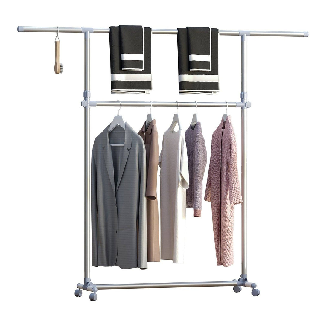 Homcom Heavy Duty Clothes Hanger Garment Rail Hanging Display Stand Rack With Wheels Adjustable