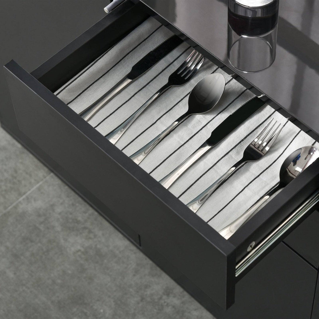This small sideboard from HOMCOM is a durable and stylish addition to every home, keeping your space clean and tidy with ease. It's made from particle board for a durable structure, with anti-tipping straps on the back for safety. With the push-click design, drawers and cabinet doors are quick and effortless to open and close. The elevated base allows air to flow through for freshness. An effortless way to bring in sleek style into your living space with our HOMCOM storage cupboard.