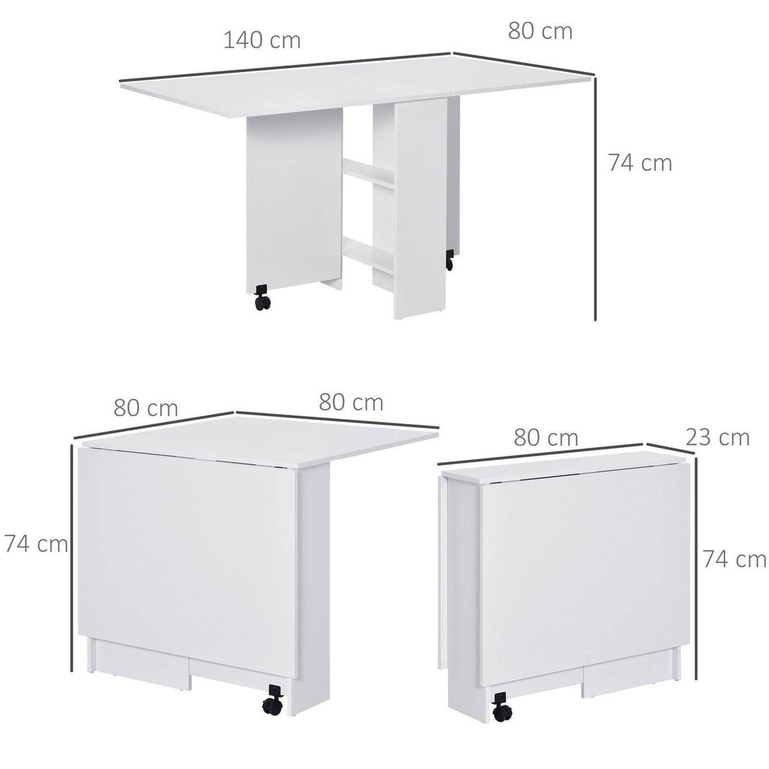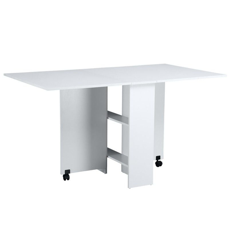 Homcom Mobile Drop Leaf Dining Kitchen Table Folding Desk For Small Spaces With 2 Wheels & 2 Storage Shelves White
