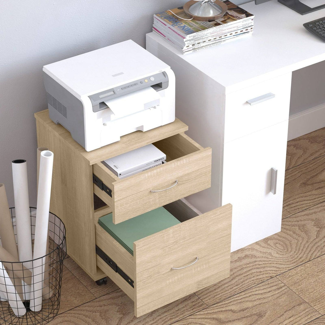 Homcom Mobile Wooden 2 Drawers Cabinet Storage Box With Wheels (Oak)