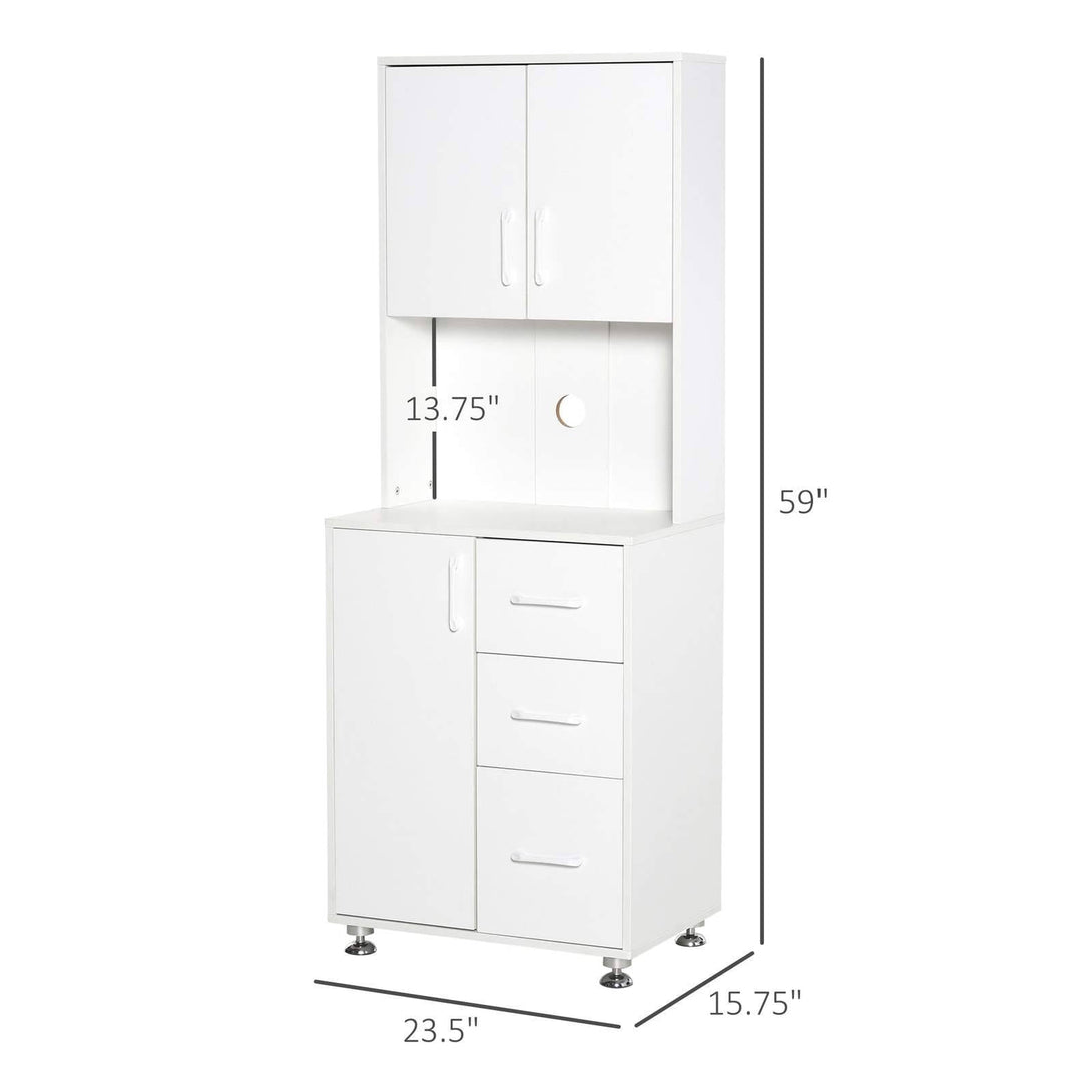 Homcom Modern Kitchen Cupboard With Storage Cabinets 3 Drawers And Open Countertop For Living Room White
