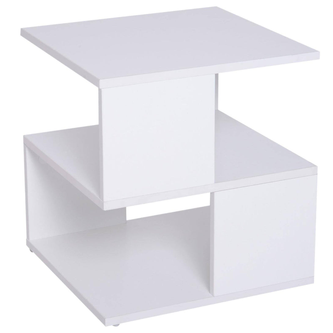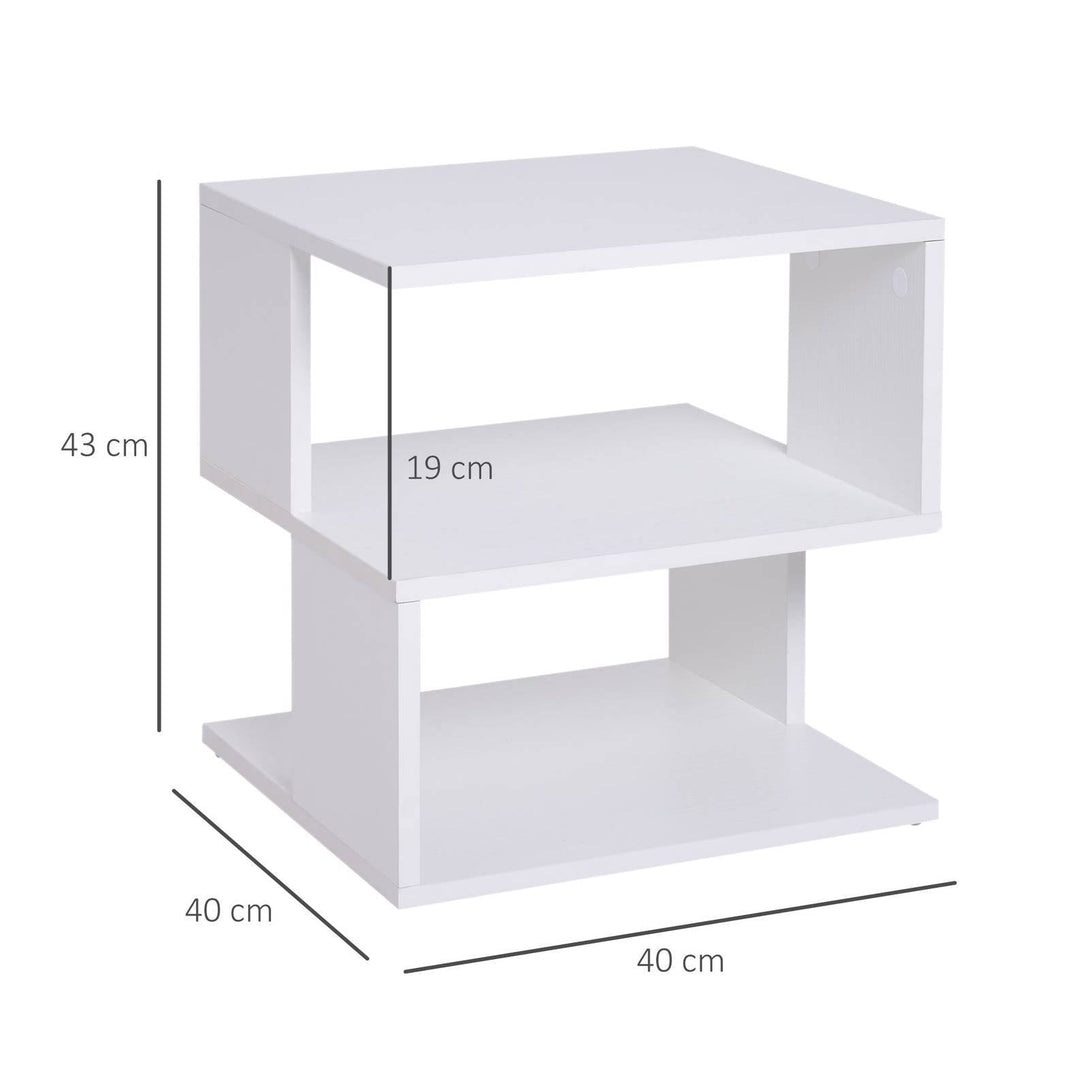 Invite unique style into your home with this side table from HOMCOM. Made from thick particle board in a sleek finish, it is crafted into a modern design which is a great focal point for living rooms and bedrooms and its two-tier open design makes it a great storage option for a wealth of possessions. With a smooth surface finish, it is easy to clean and maintain, making it great for those with busy lifestyles.