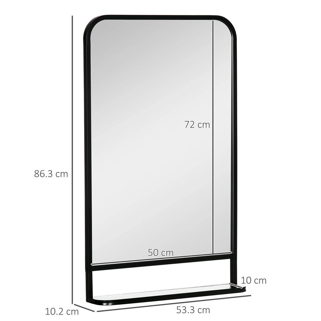 Homcom Square Wall Mirror With Storage Shelf 86 X 53 cm Modern Mirrors For Bedroom Living Room Black