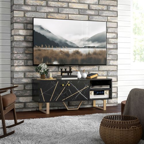 Homcom TV Unit for Living Room, TV Stand, Black Marble