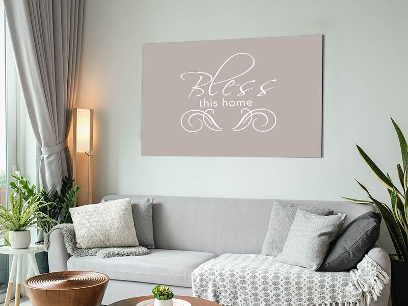 Home Quote Bless This Home Beige Printed on brushed aluminium dibond. A modern way to display art and easy to maintain.