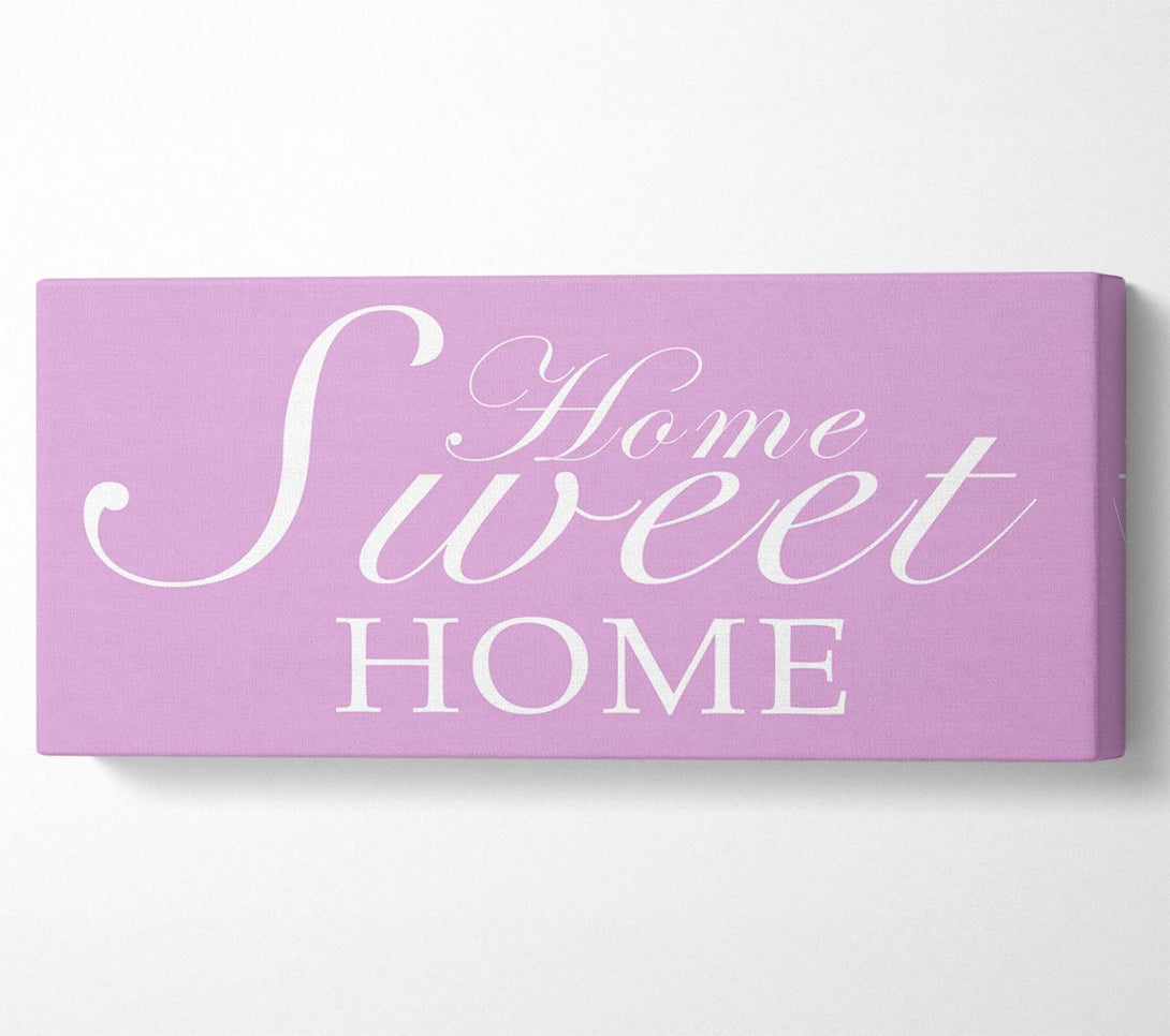 Home Quote Home Sweet Home Pink canvas, printed on coated polyester canvas. Mounted on to a 44mm box frame, ready to hang.