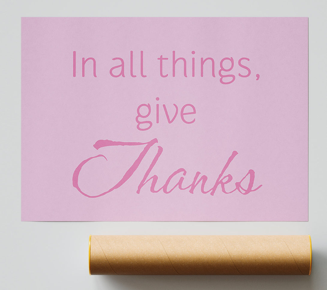 Home Quote In All Things Give Thanks Pink Giclee Print