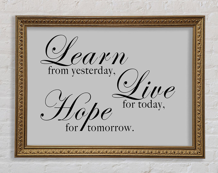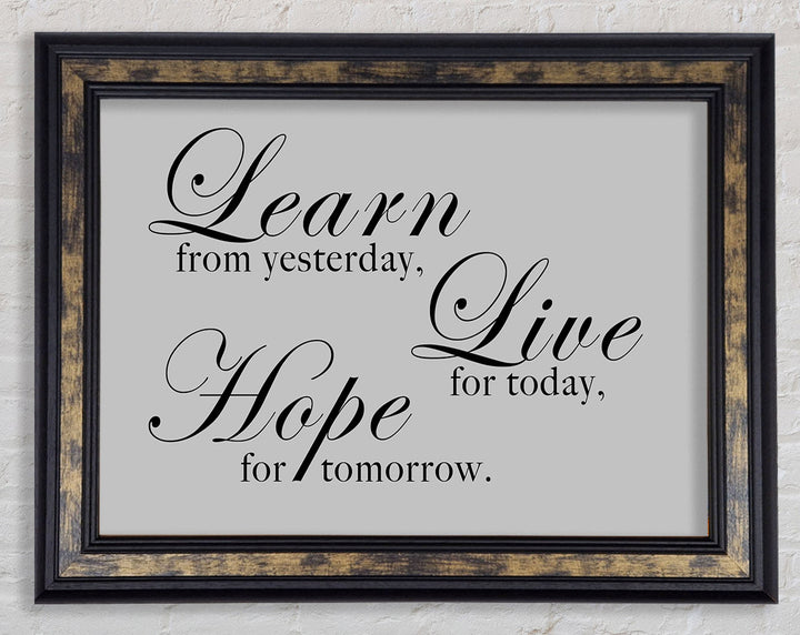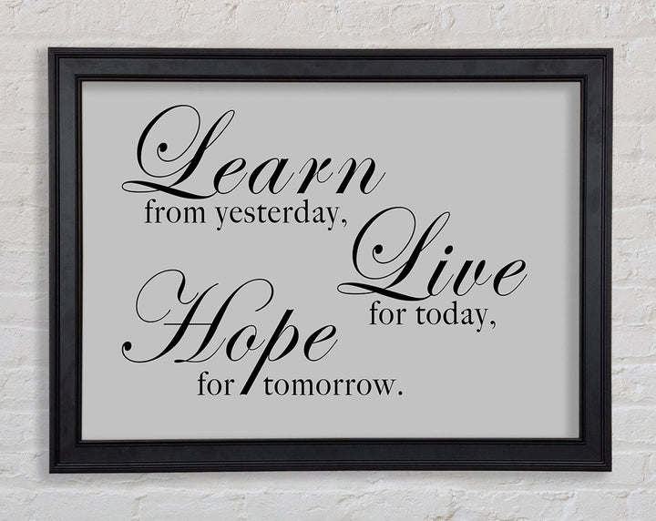 Home Quote Learn Live Hope Grey Framed Print