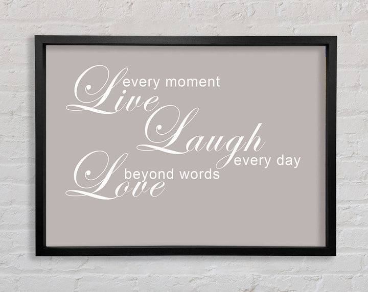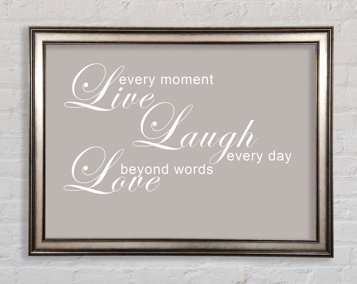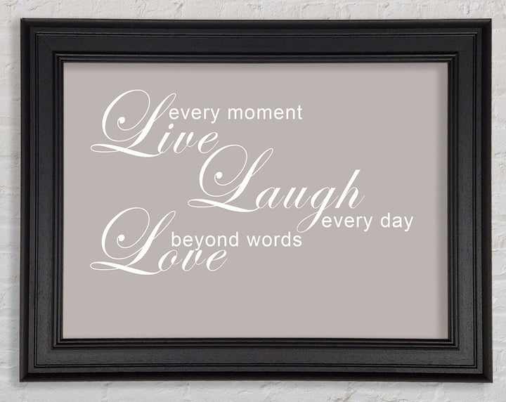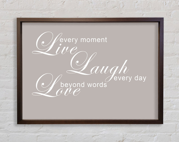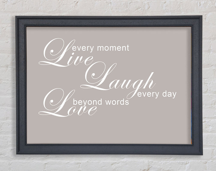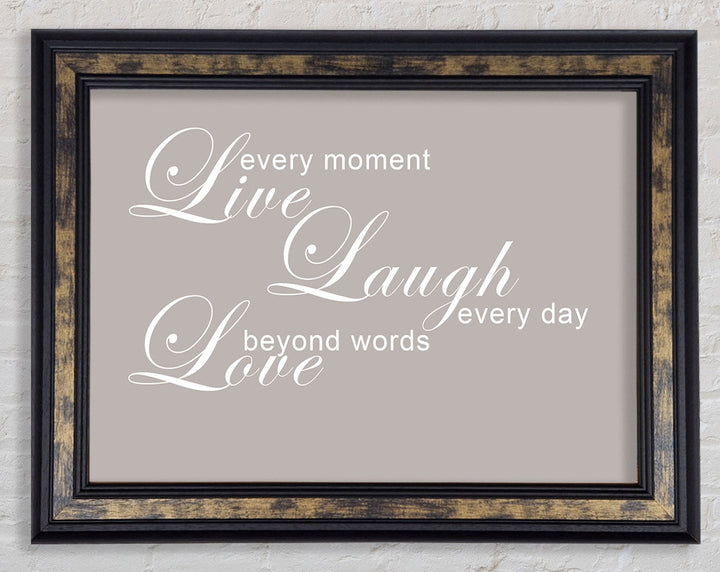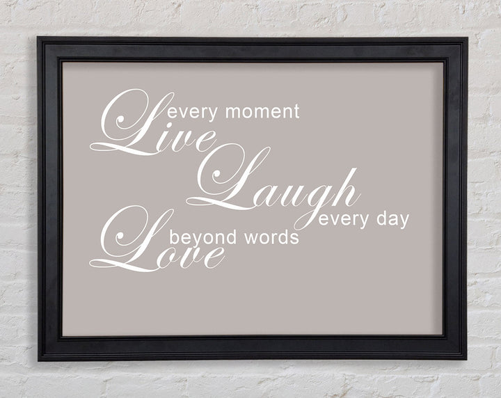 Home Quote Love Quote Live Every Moment 3 Beige Framed Print