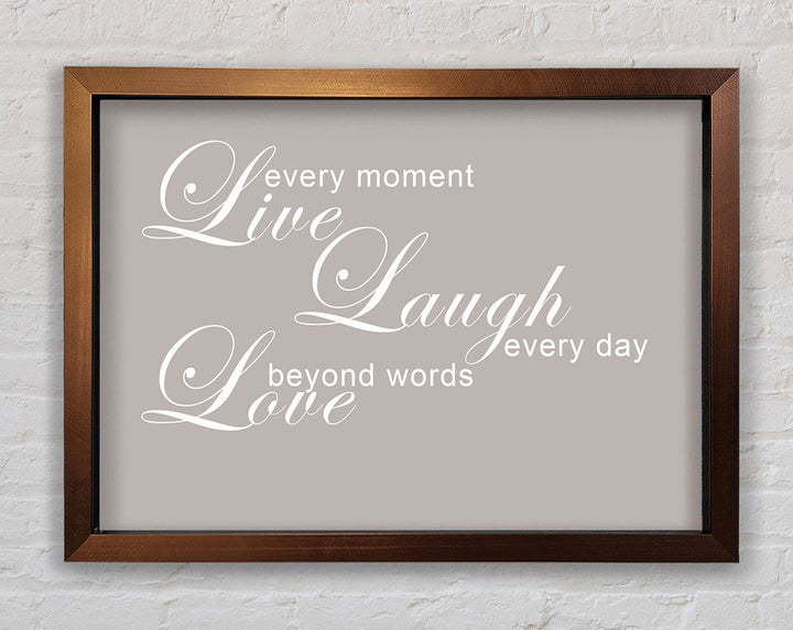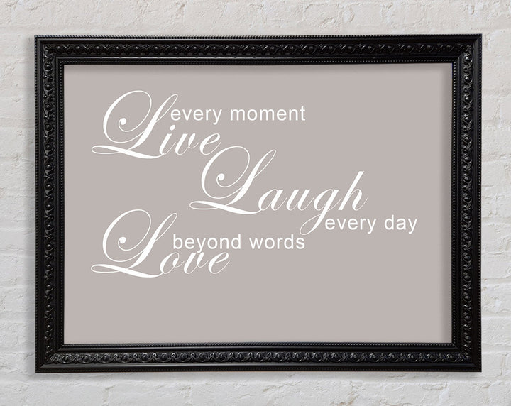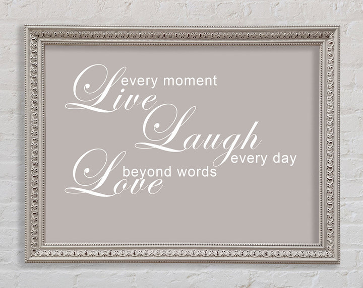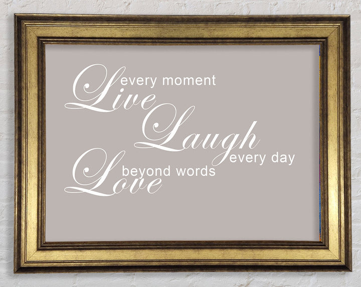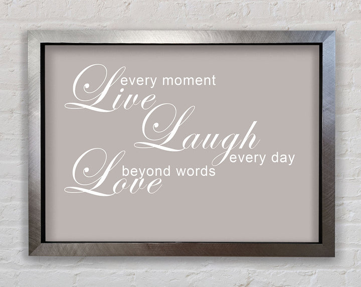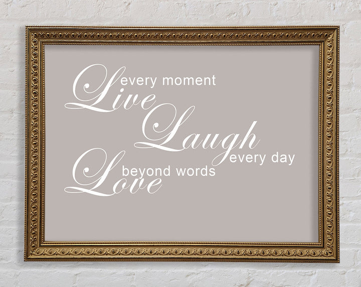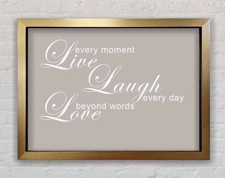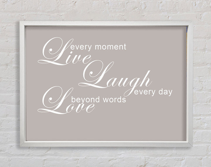 Home Quote Love Quote Live Every Moment 3 Beige Framed Print
