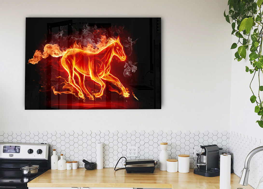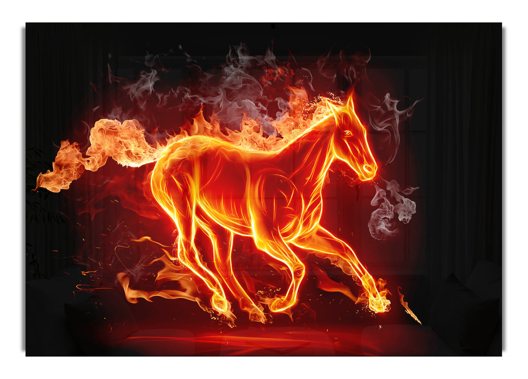 Horse Of Flames acrylic print, UV printed onto 5mm thick acrylic glass. Comes with everything you need to hang on your wall.