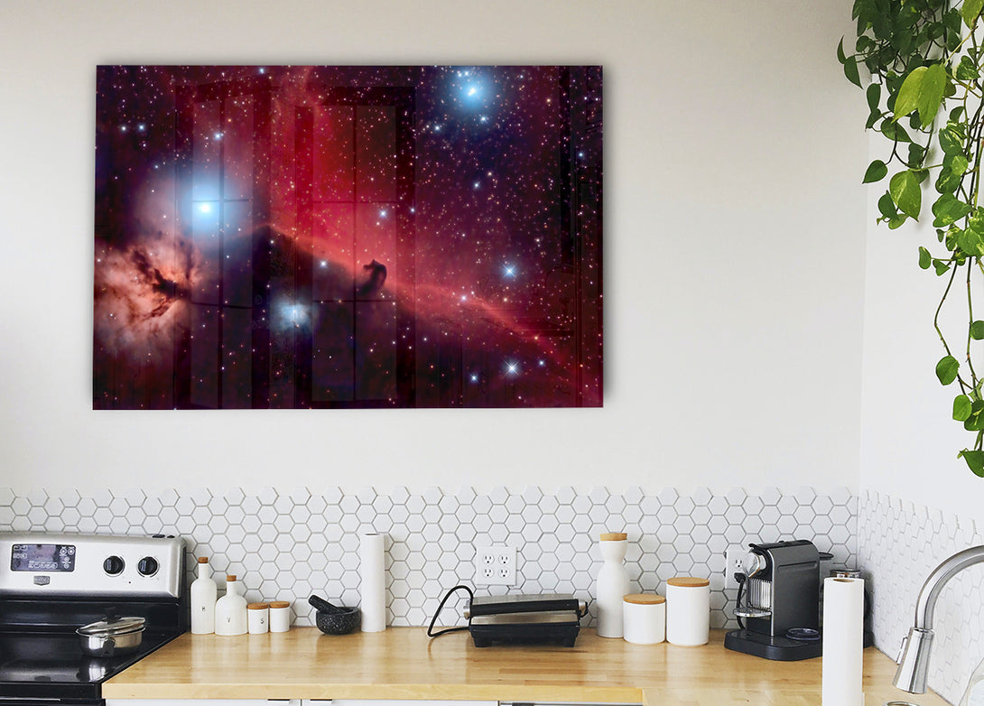 Horsehead Nebula Red acrylic print, UV printed onto 5mm thick acrylic glass. Comes with everything you need to hang on your wall.
