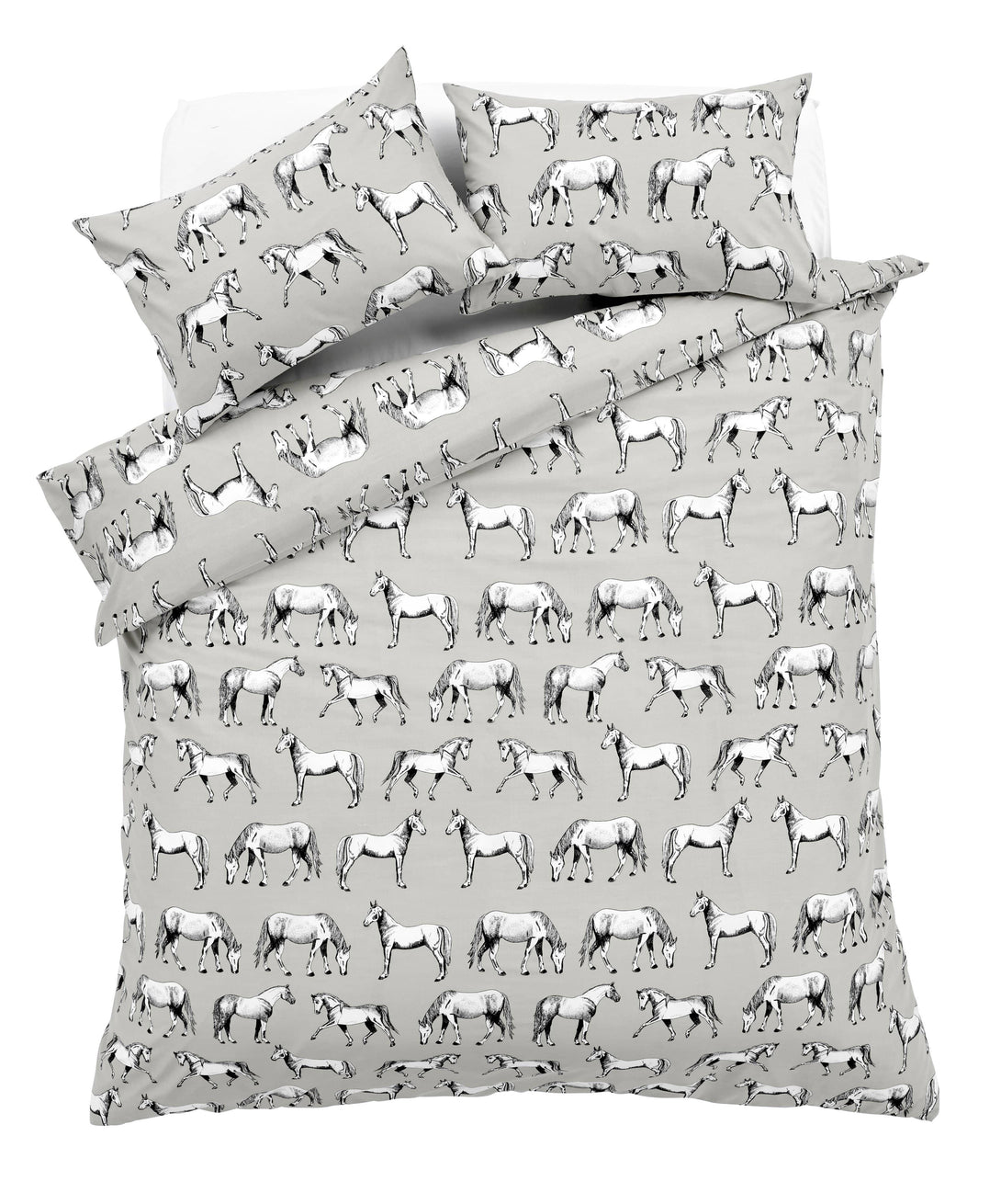 Horses Design Cotton Rich Duvet Set with Bold Colours and Luxurious Comfort Elegant Breathable Durable Bedding with Pillow Cases Available in Single and Double Sizes by OLIVIA ROCCO