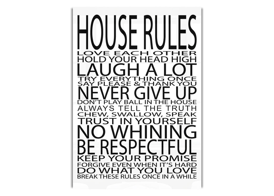 House Rules Love Each Other acrylic print, UV printed onto 5mm thick acrylic glass. Comes with everything you need to hang on your wall.