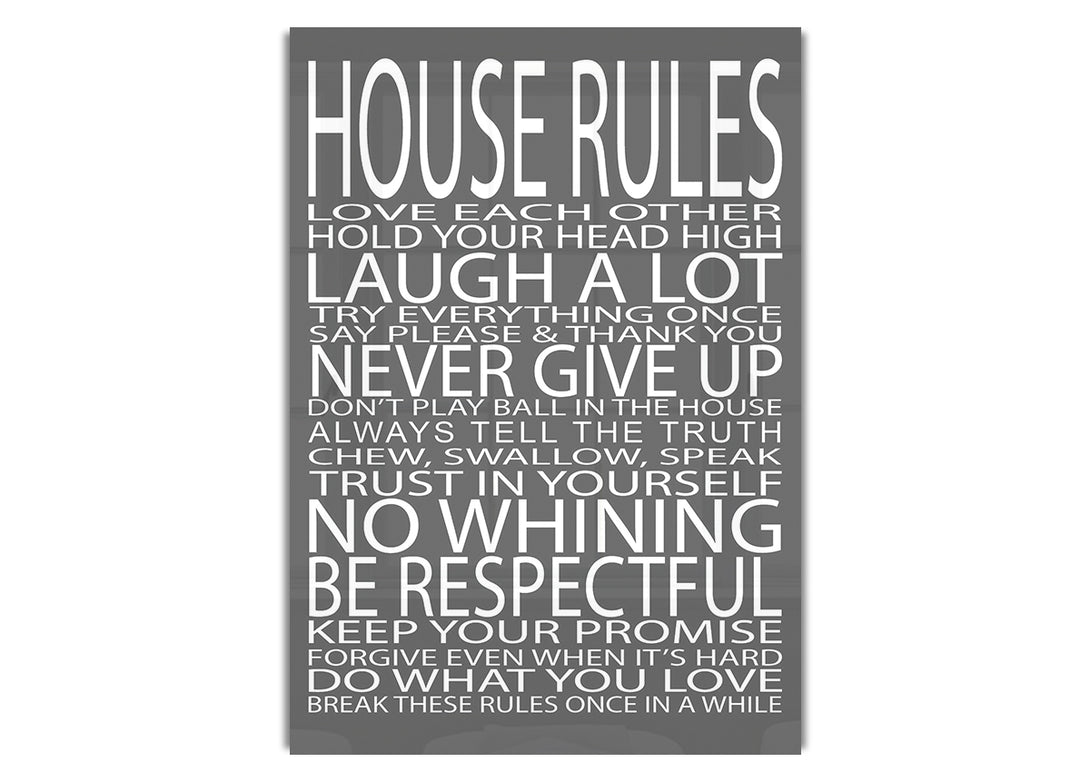 House Rules Love Each Other Grey acrylic print, UV printed onto 5mm thick acrylic glass. Comes with everything you need to hang on your wall.