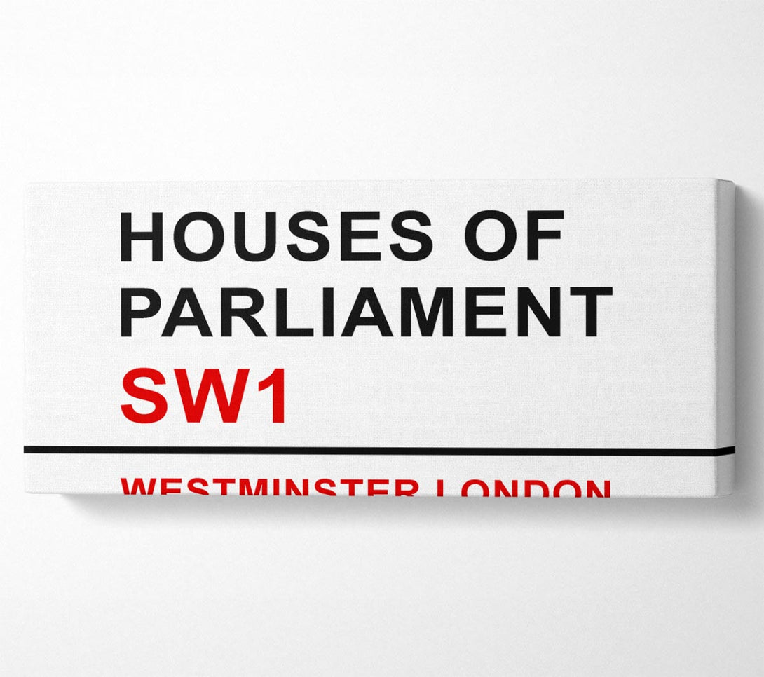 Houses Of Parliament Signs canvas, printed on coated polyester canvas. Mounted on to a 44mm box frame, ready to hang.