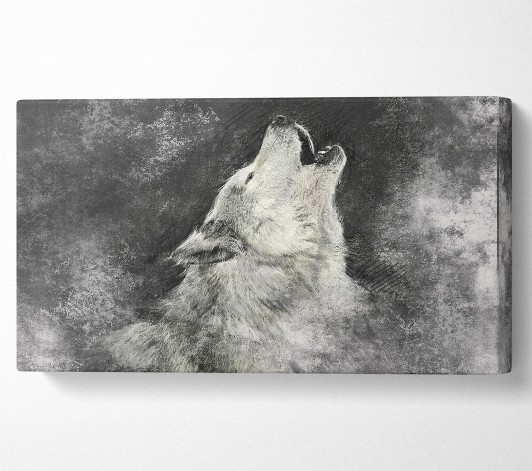 Howling Wolf Calling His wide canvas, printed on coated polyester canvas. Mounted on to a 44mm box frame, ready to hang.