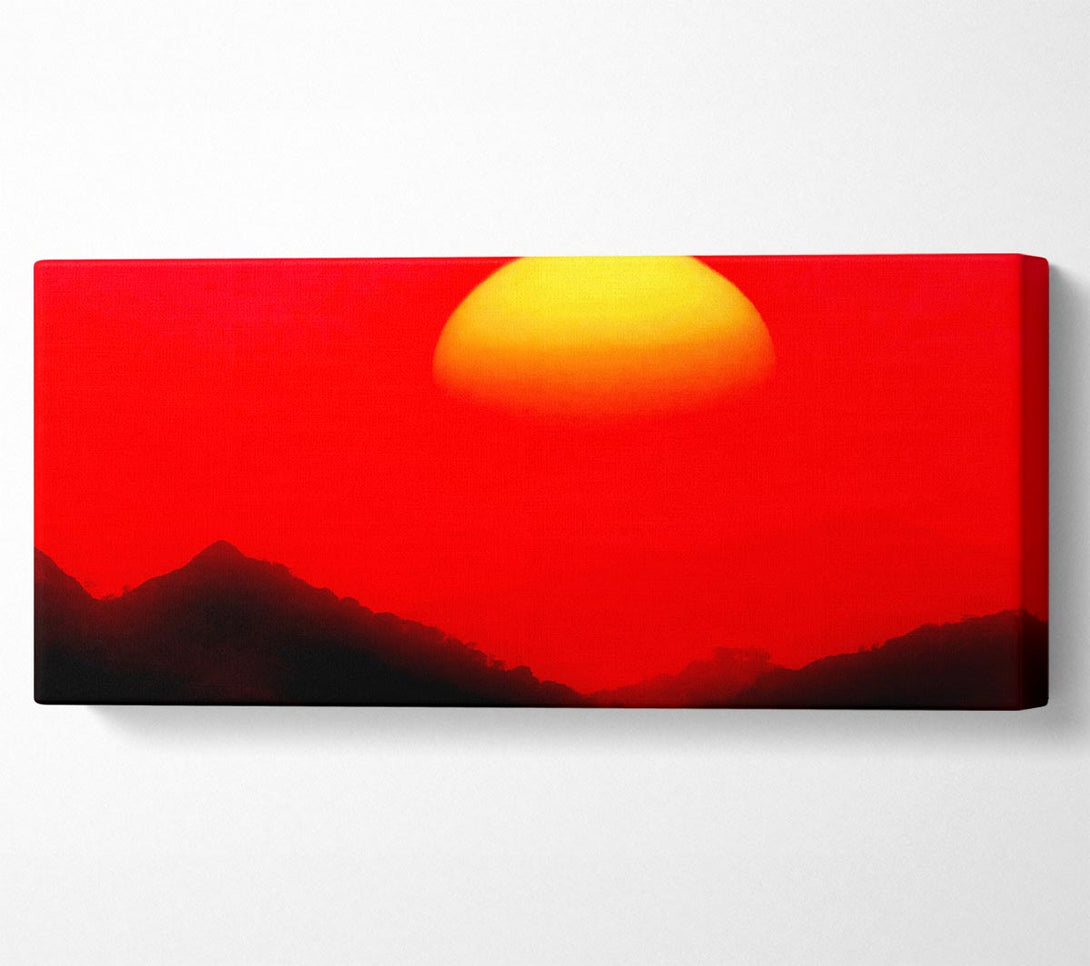 Picture of Huge Sun Over The Mountain Tops Red Panoramic Canvas Wall Art
