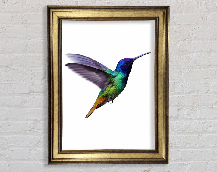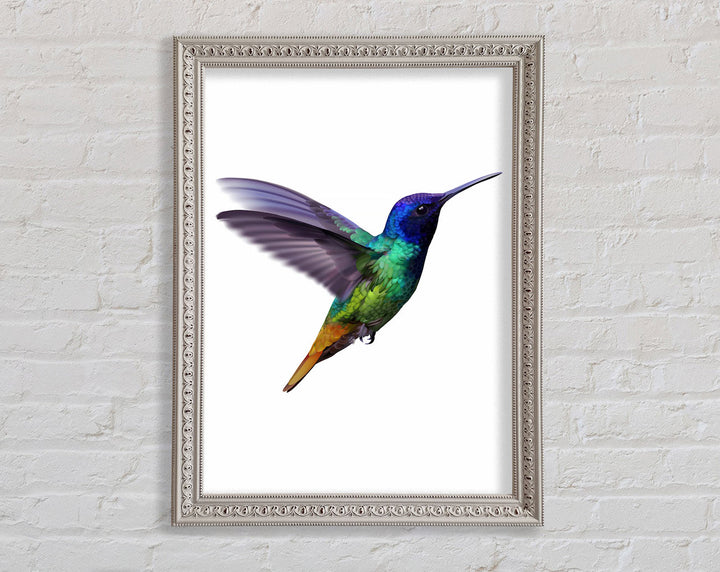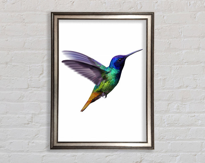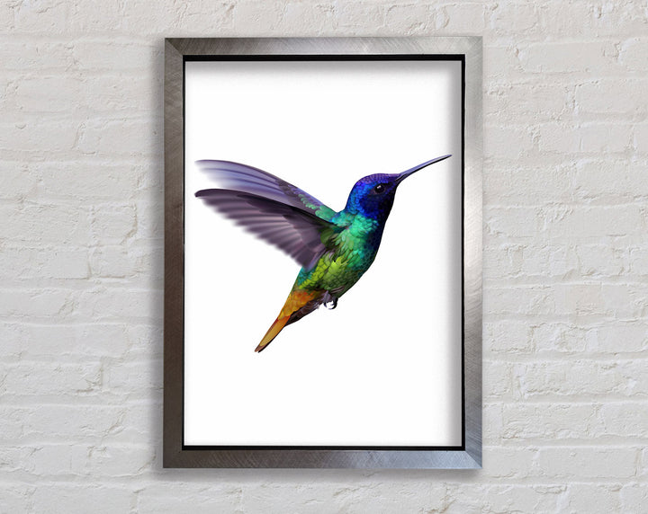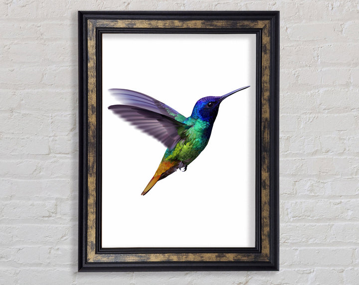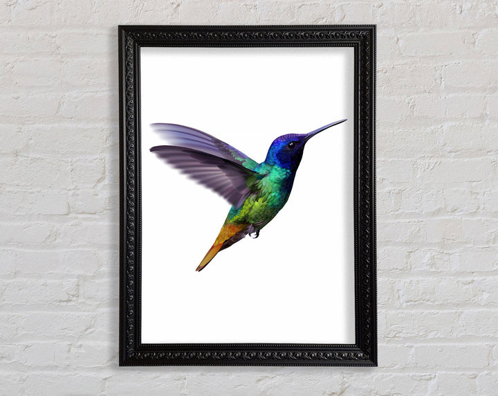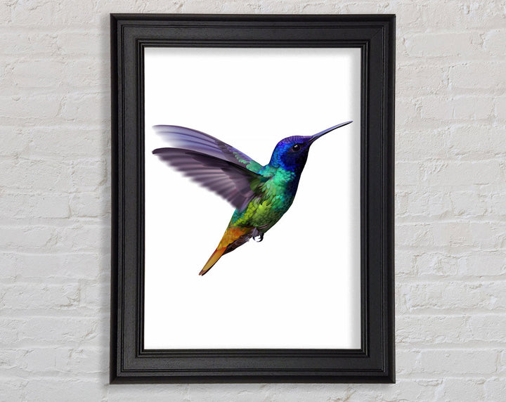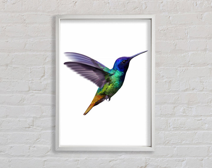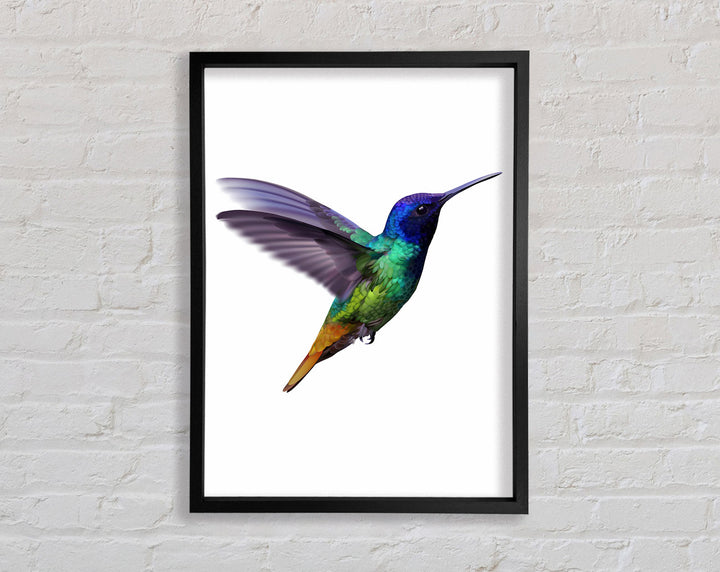 Introducing the Hummingbird Colours Framed Print, a stunning piece of framed art that brings vibrant beauty to any space. This exquisite print features a detailed and colorful hummingbird, captured in mid-flight. Available in six sizes, from small to oversized, it fits perfectly in any room, whether it's a cozy nook or a grand living area.