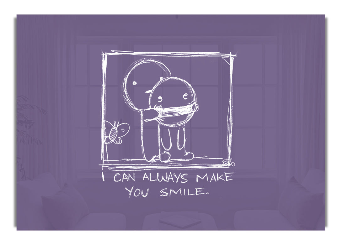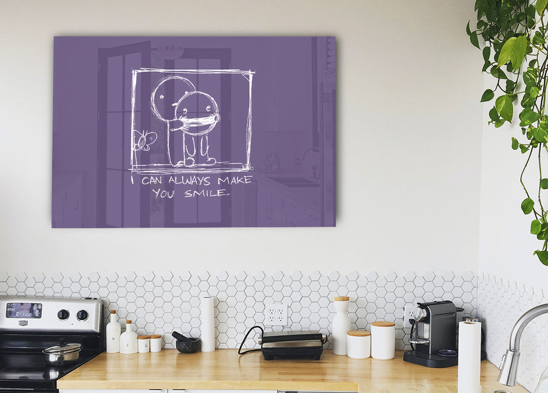 I Can Always Make You Smile Lilac acrylic print, UV printed onto 5mm thick acrylic glass. Comes with everything you need to hang on your wall.