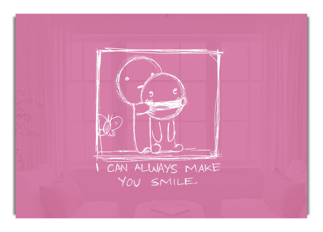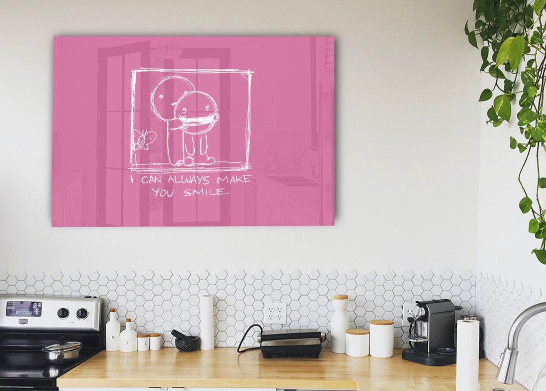 I Can Always Make You Smile Pink acrylic print, UV printed onto 5mm thick acrylic glass. Comes with everything you need to hang on your wall.